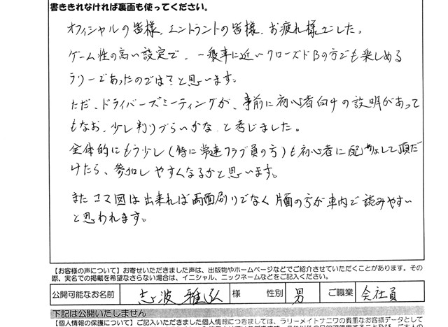 きのくにラリー2013、お客様の声