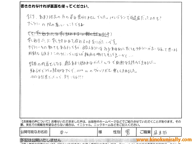 2014きのくにラリー、お客様の声